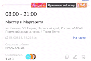 Event Calendar присылает push-уведомление при любом изменении: дата, участники, локация, подробности, расписание